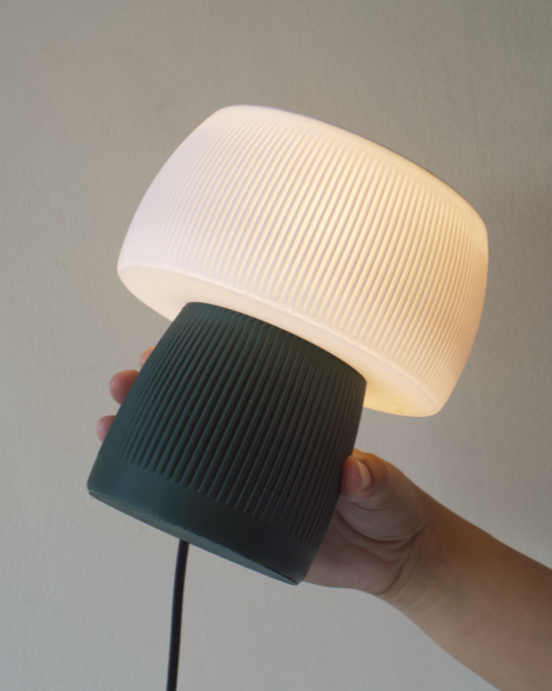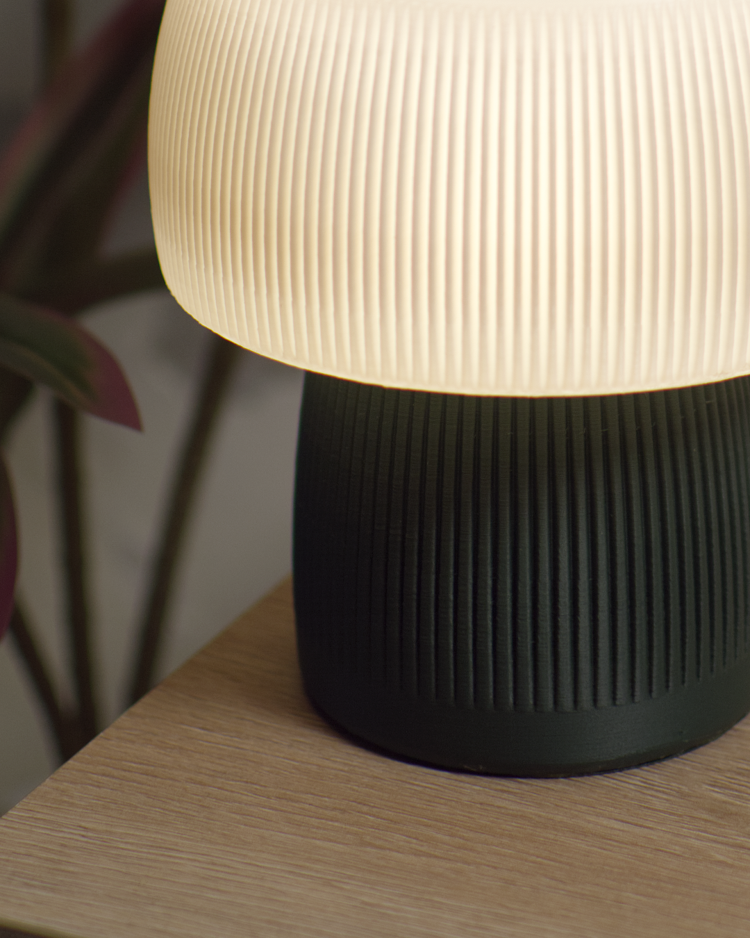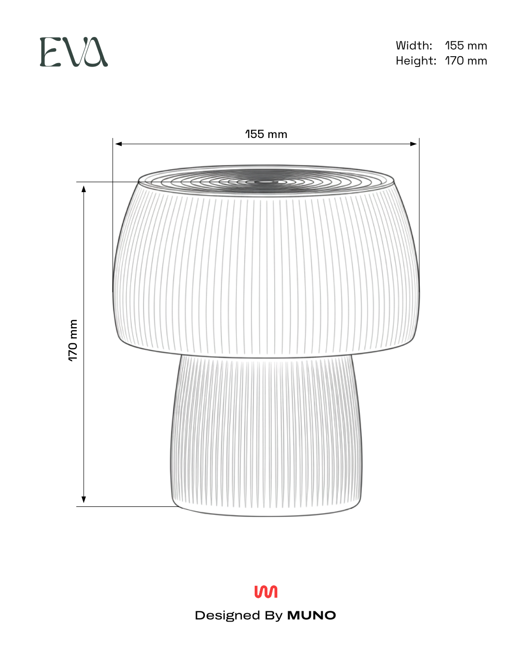 EVA by MUNO is a compact and elegant lighting piece. Its soft, mushroom-like silhouette features a continuous ribbed texture that flows seamlessly from base to shade, creating a tactile and visually cohesive design.